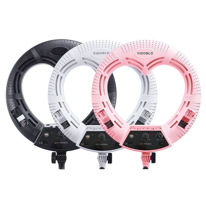 LV-480S 18 inch LED hartvormig ringlamp bevatte 480 stukken SMD led chips, kleurtemperatuur instelbaar van 3200-5500K+-200K. Twee aangedreven manieren, het draait op 110-220V wisselstroom of 14.externe 8V gelijkstroombatterijen.